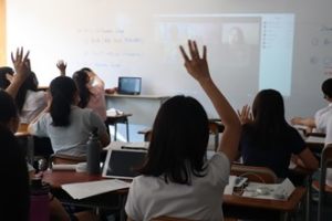「コロナが終わったらお互いの国に行ってみたい」と話す生徒たち。実際の海外渡航が困難な状況下ですが、こうしたツールを活用して国際交流を活発に続けています。