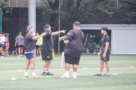 元オールブラックスのコーチによる指導を受ける生徒たち