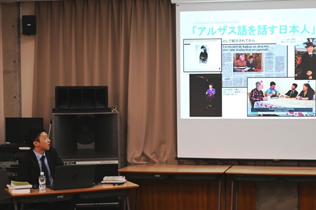 アルザス地方は歴史上フランス・ドイツ間を幾度も行き来し、独自の言語が発達した地ですが、地域言語の常として話者の減少や言語文化の保存が課題となっています。作本氏からは、自身の生い立ちへの興味からアルザス語を学んだこと、言語を通じて現地の人々と言語研究にとどまらない交流を結びつながりの輪が広がっていったこと、今後の研究課題などについて、豊富な体験談や写真を交えて語っていただきました。