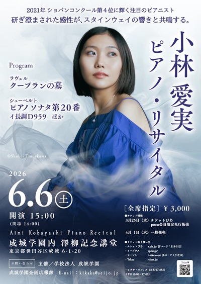 今年は「第18回ショパン国際ピアノコンクール」第4位入賞の小林愛実氏をお招きして、以下のプログラムで開催いたします。