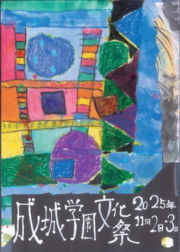1年生が描いた文化祭ポスターは、初めての絵の具体験から生まれました。あやのすけは色の美しさを探りながら、工夫して組み合わせを試していました。その表現は、成城っ子一人ひとりの個性豊かな色が響き合い、互いに高め合う文化祭そのものの姿を映しているように感じられます。