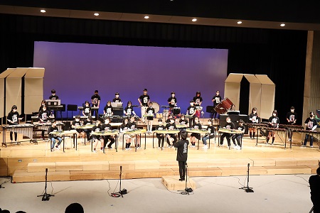 ブラスバンド部6年生による打楽器演奏「ダンシング・ヒーロー」