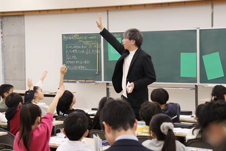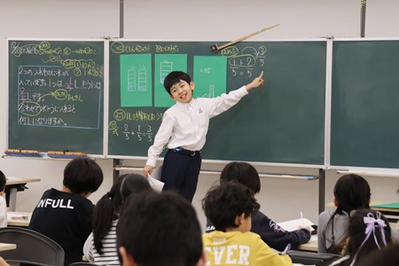 数学科では、「算数授業を通して学級経営を語る」をテーマに、3年生と5年生を対象とした公開授業を行いました。英語科では、自然(Nature)をテーマとして、2年生と5年生を対象としたPBLLの授業を公開しました。
