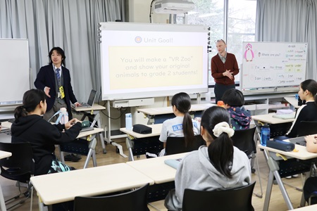 授業① 2年生 授業者:小石原 里佳子(本校教諭)、Jason Funk(本校教諭)