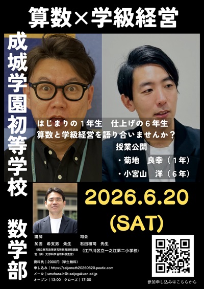 | 14:30〜15:15 | 授業② 数6年生 授業者:小宮山洋 |