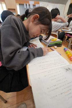 また、ICTを活用する場面を持ちながらも、手で書くことの価値を重視しています。