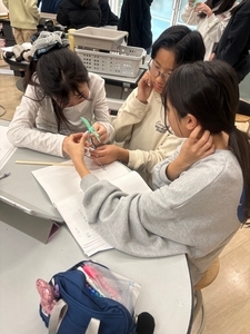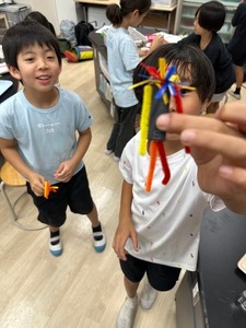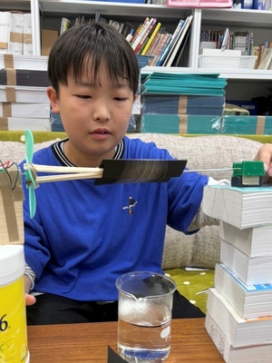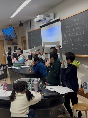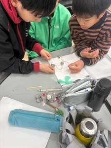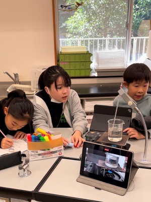 また、理科は授業時間だけで学ぶ教科ではないので、日常的に科学や自然の不思議さに触れられるように、理科室周辺の「理科展示」も工夫して行っています。休み時間や昼休み等に授業時間だけでは疑問が解消しなかった子たちが、「自由理科」をしに来ることもあります。
