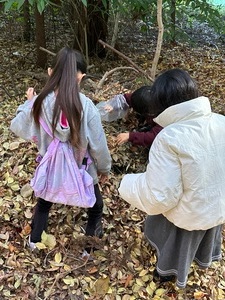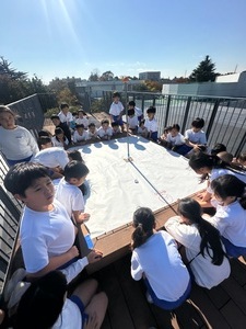 そんな今だからこそ、私達は学びの中に、デジタルではない「本物」に出会う機会を多く取り入れたいと考えています。例えば、1台の車の台車を試行錯誤しながら、様々な動力で実際に動かしてみる体験。学校の裏庭(地獄谷)に川を掘って流水のはたらきを考える体験。カイコを飼って観察しつつ「蛾にするのか、糸を取るのか」を悩み、考える体験。遊び道具であるコマを様々に変化させながら力やバランスについて考える体験。成城恐竜ミュージアムの巨大実物恐竜化石に触れて生命について考える体験。本物の化石の入った石を金づちと釘で割って化石を探す体験。夏の学校で海や山に行ってマイクロプラスチックや気圧の変化・野生生物について考える体験。花火づくり、火おこし体験、スモークの中で光の屈折実験、巨大シャボン玉・・・・あげればきりがありません。