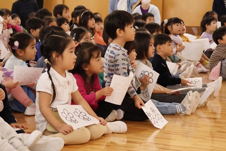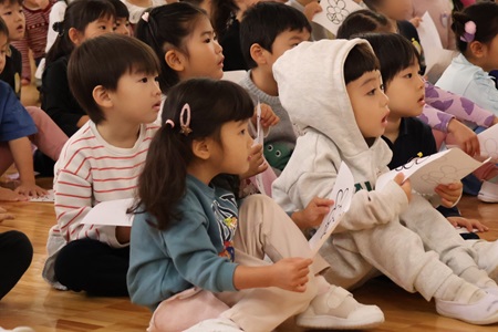 これから何が始まるのか先生の一挙手一投足に目が釘づけの子どもたち